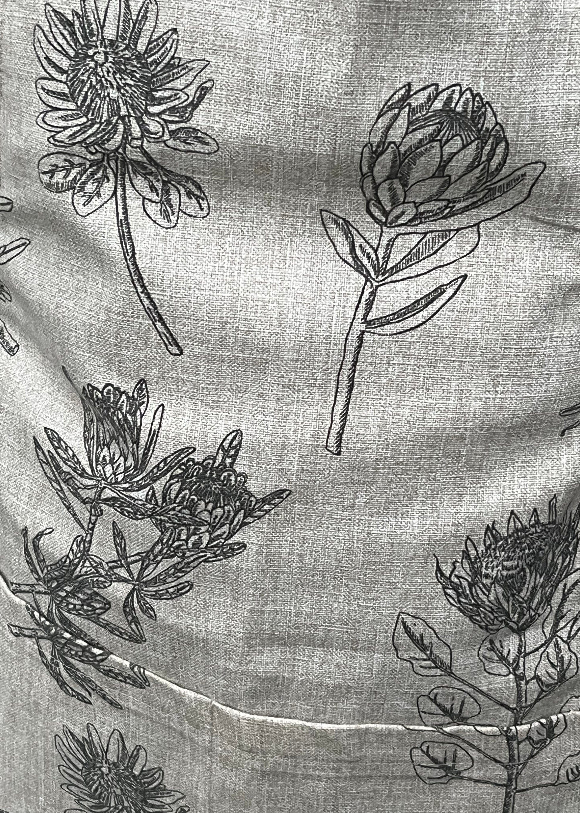 100% Cotton Apron, Beige with Protea motif
